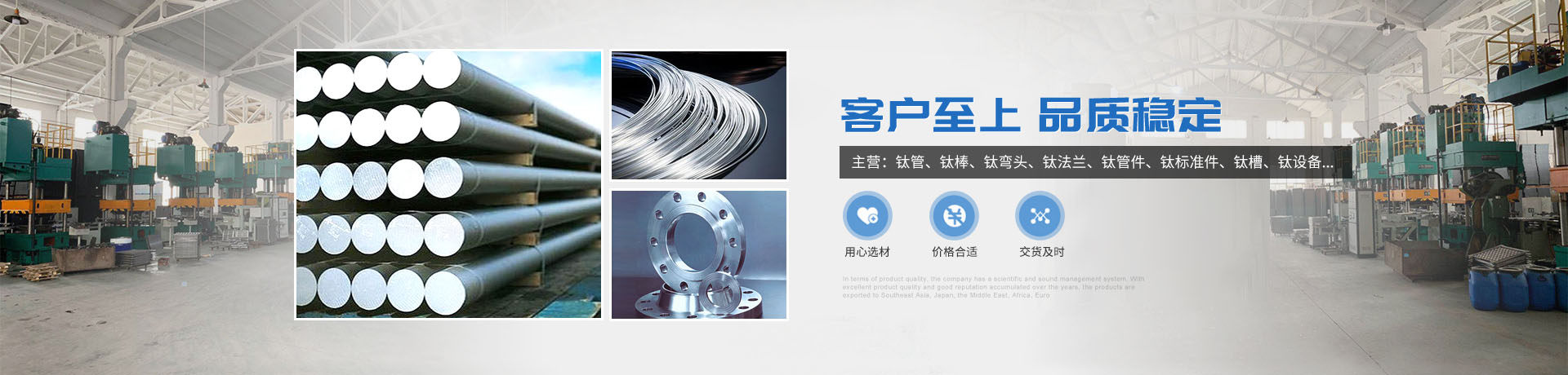 本公司的主營產品鈦制品有,鈦管,鈦棒,鈦彎頭,鈦法蘭,鈦管件,鈦標準件,鈦槽,鈦設備,鈦沖壓彎頭等。所生產各種規格的鈦制品主要運用于化工、電鍍、石油、電子、環保、海洋等領域"以質量求生存,靠優服求發展“為宗旨,客戶的滿意是我們永恒的追求,歡迎各界用戶來函來電,傳真,洽談貿易。